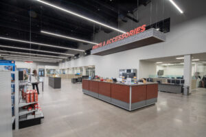 For General RV Center, the nation’s largest family-owned RV dealer, the new South Weber location represents their 15th Supercenter in the U.S. Upon viewing the finished project, the client especially appreciated the polished concrete floors. Though the building primarily delivers in function, the expert techniques in construction provided an open, sophisticated space for General RV to both display and service—on floors that match their professional work and quality. Its clean, industrial aesthetics complemented the client’s vision, and the craftmanship of its results ensures enduring quality in the services the client provides.