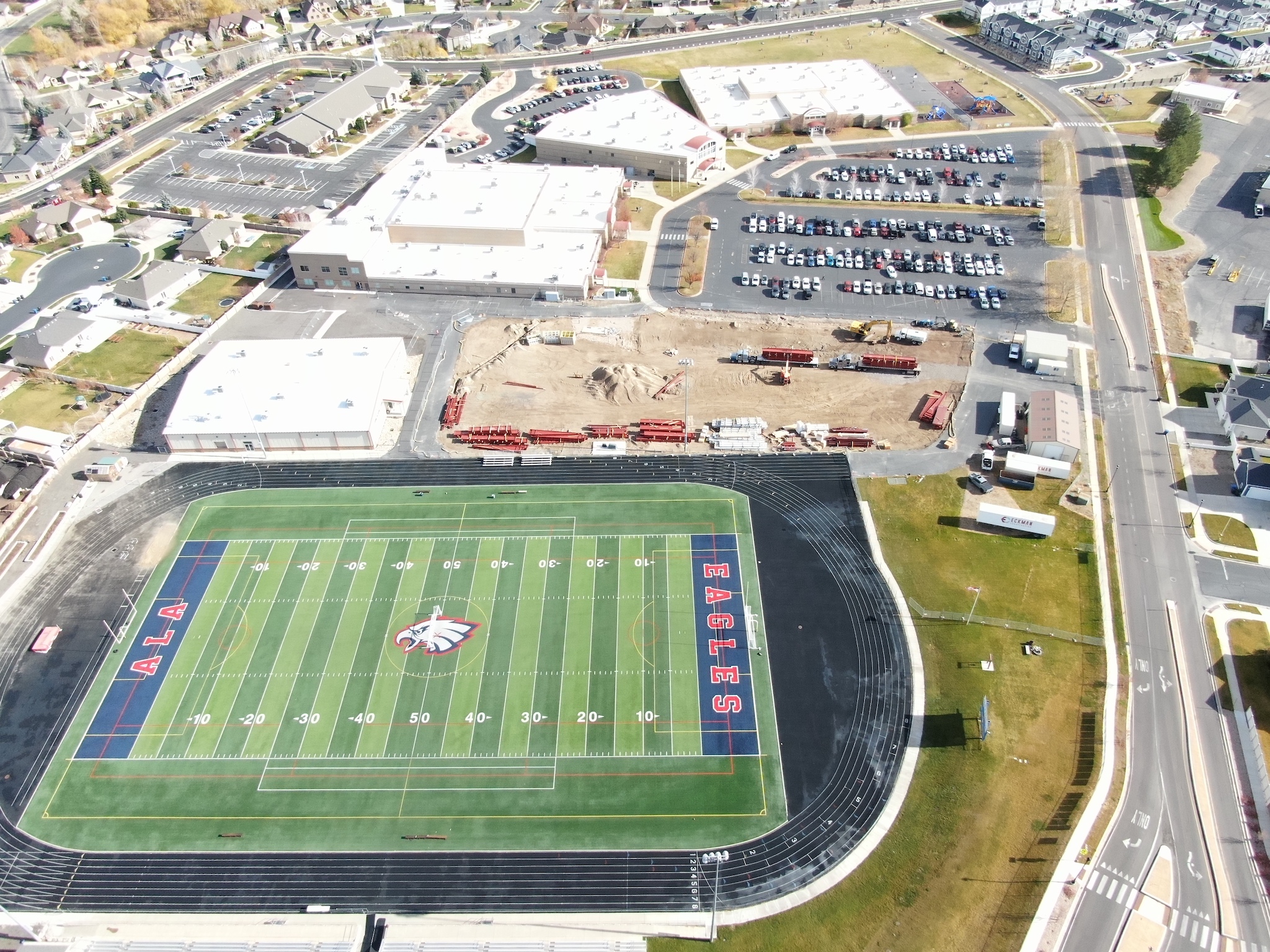 Eckman Construction is serving as the CMGC for the next four phases of work at the American Leadership Academy. The first phase is the Athletics Facility, which will be followed by a Pre-K/Admin building, bleacher remodel, and interior school remodel. The Athletic Facility includes an athletic center and fieldhouse in a pre-engineered metal building shell. With close work alongside the architect, ALA, and various engineers and designers for the project, Eckman’s team is in the process of creating a functional and beautiful space for ALA’s athletes—all within budget.