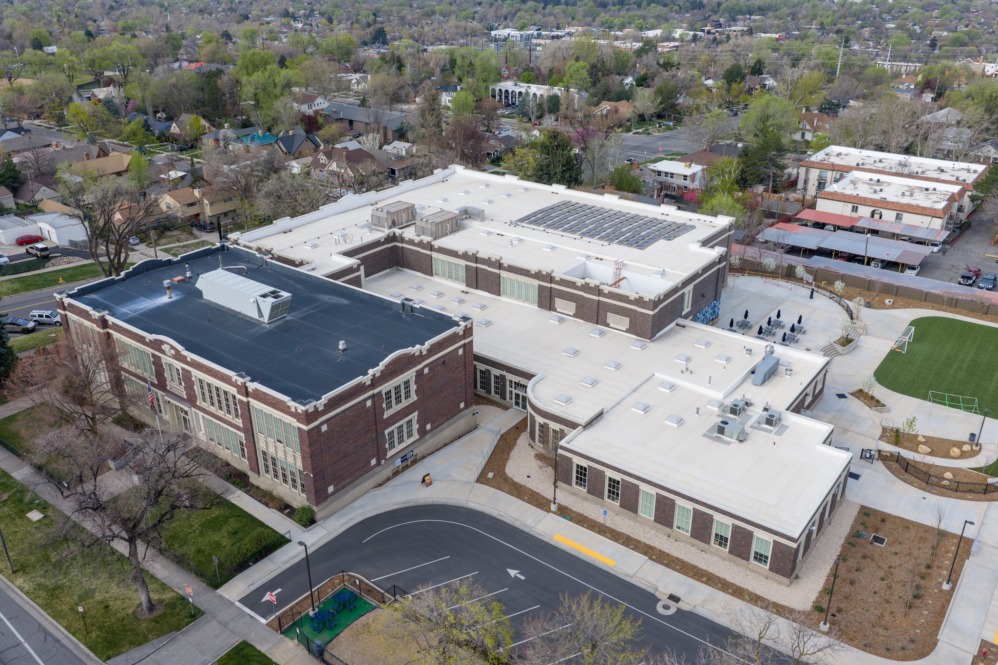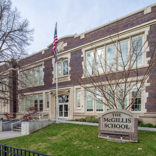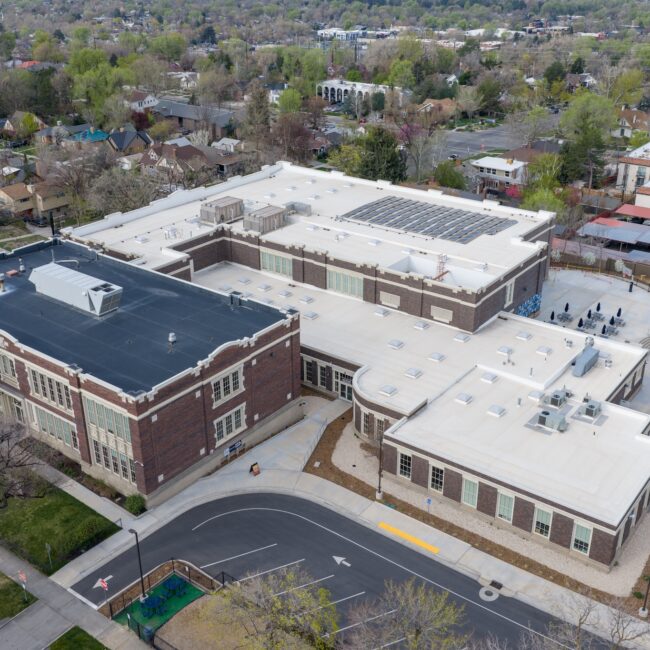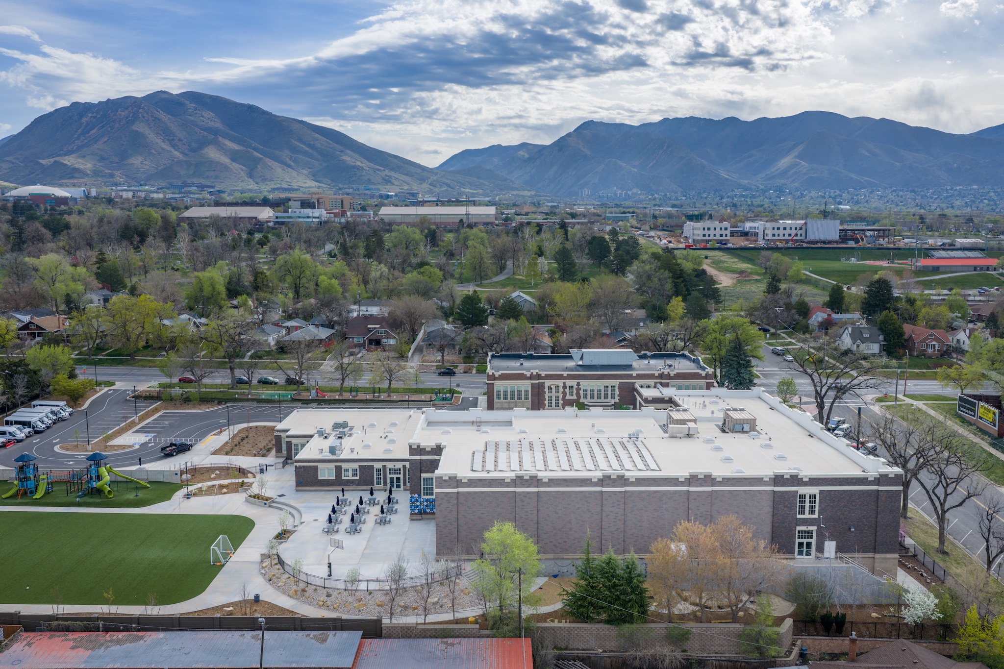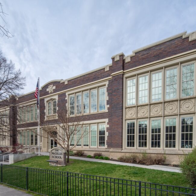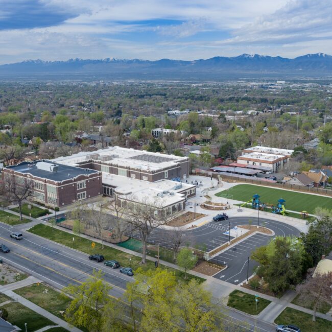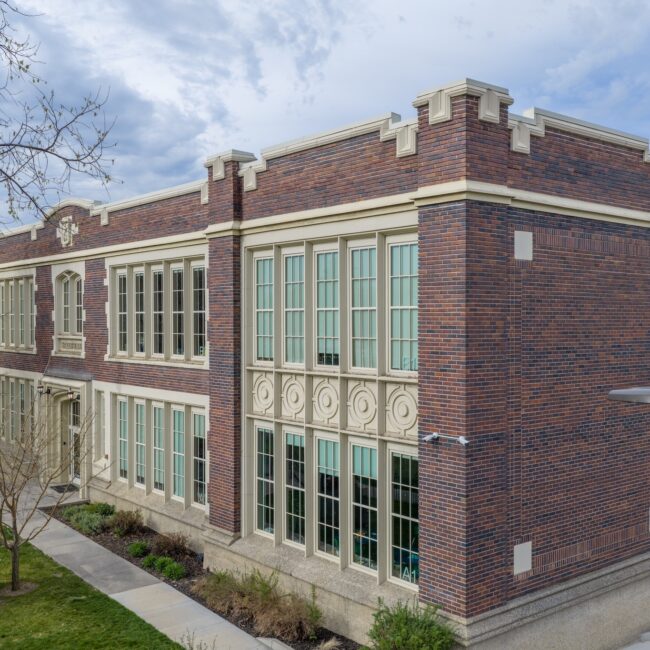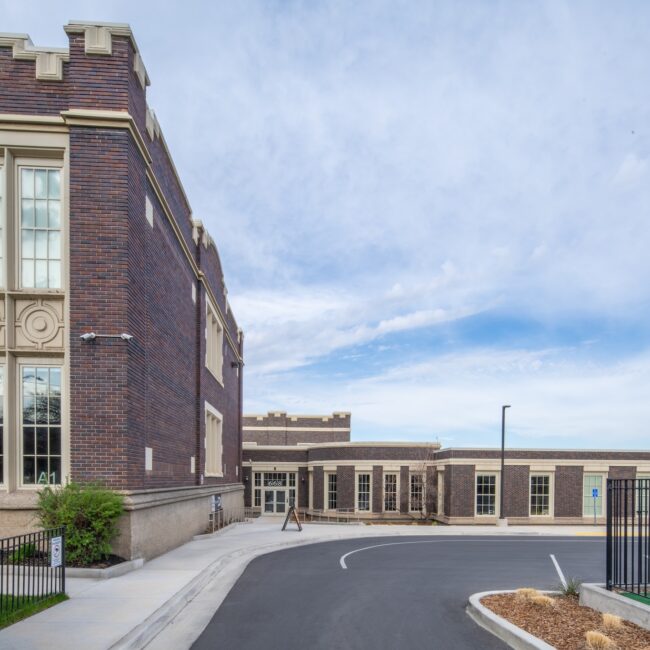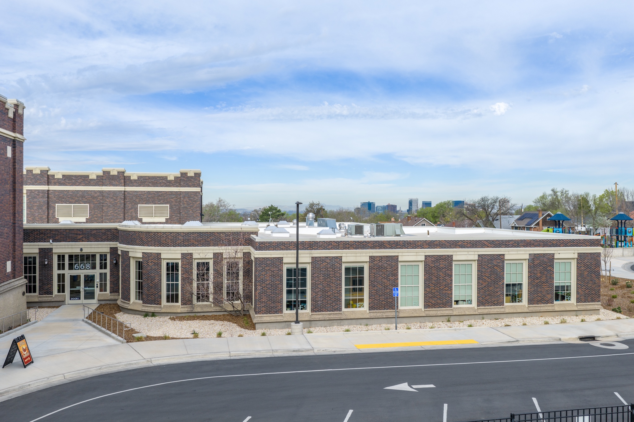 Originally built in 1915, the McGillis School was previously known as Salt Lake City School District’s Douglas School. Guided by the original school plans, the renovation preserved much of the building’s historic fabric. The original maple floors in the halls were refinished. Drop ceilings in the classrooms were raised to expose beautiful tall windows to their full height. On the exterior, water-damaged concrete was repaired. An unobtrusive aluminum cap on the roof’s parapet wall will protect it from further damage.